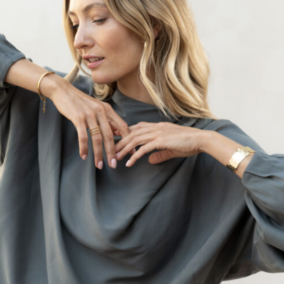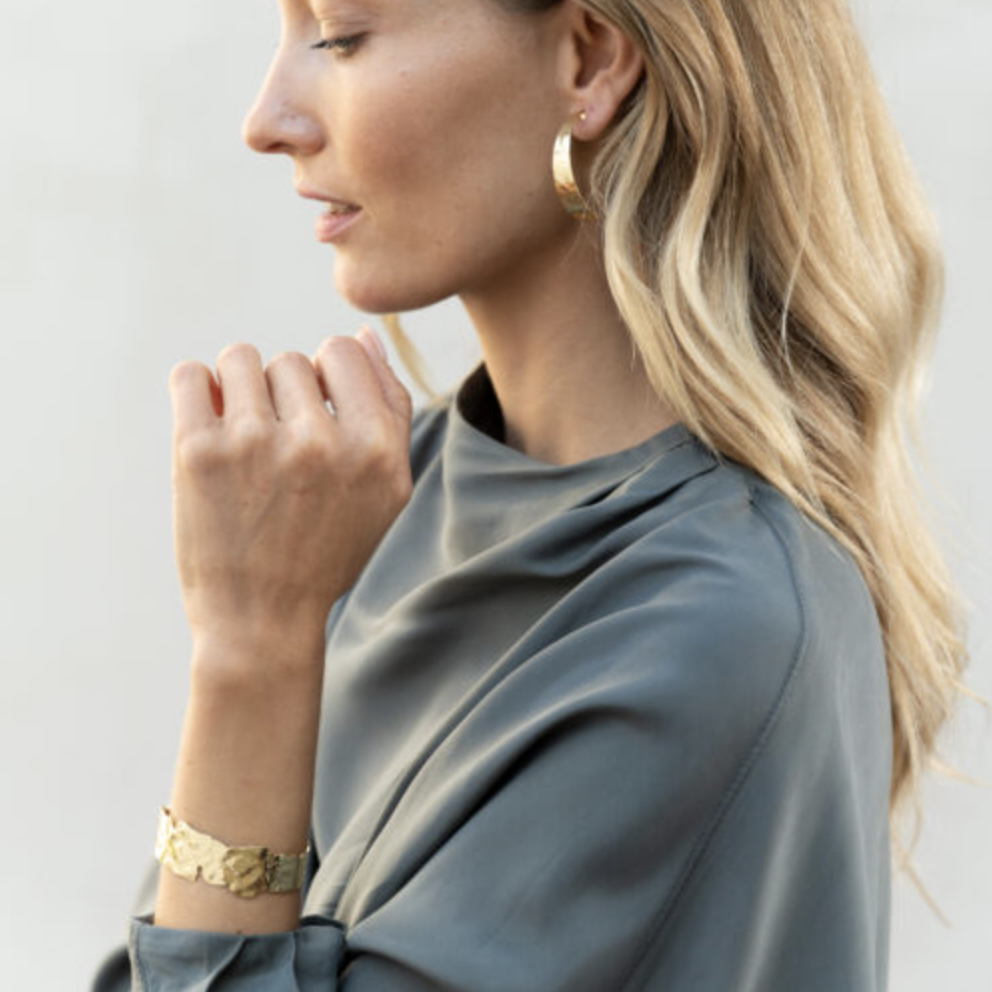vergulde gehamerde bangle in organische vorm.