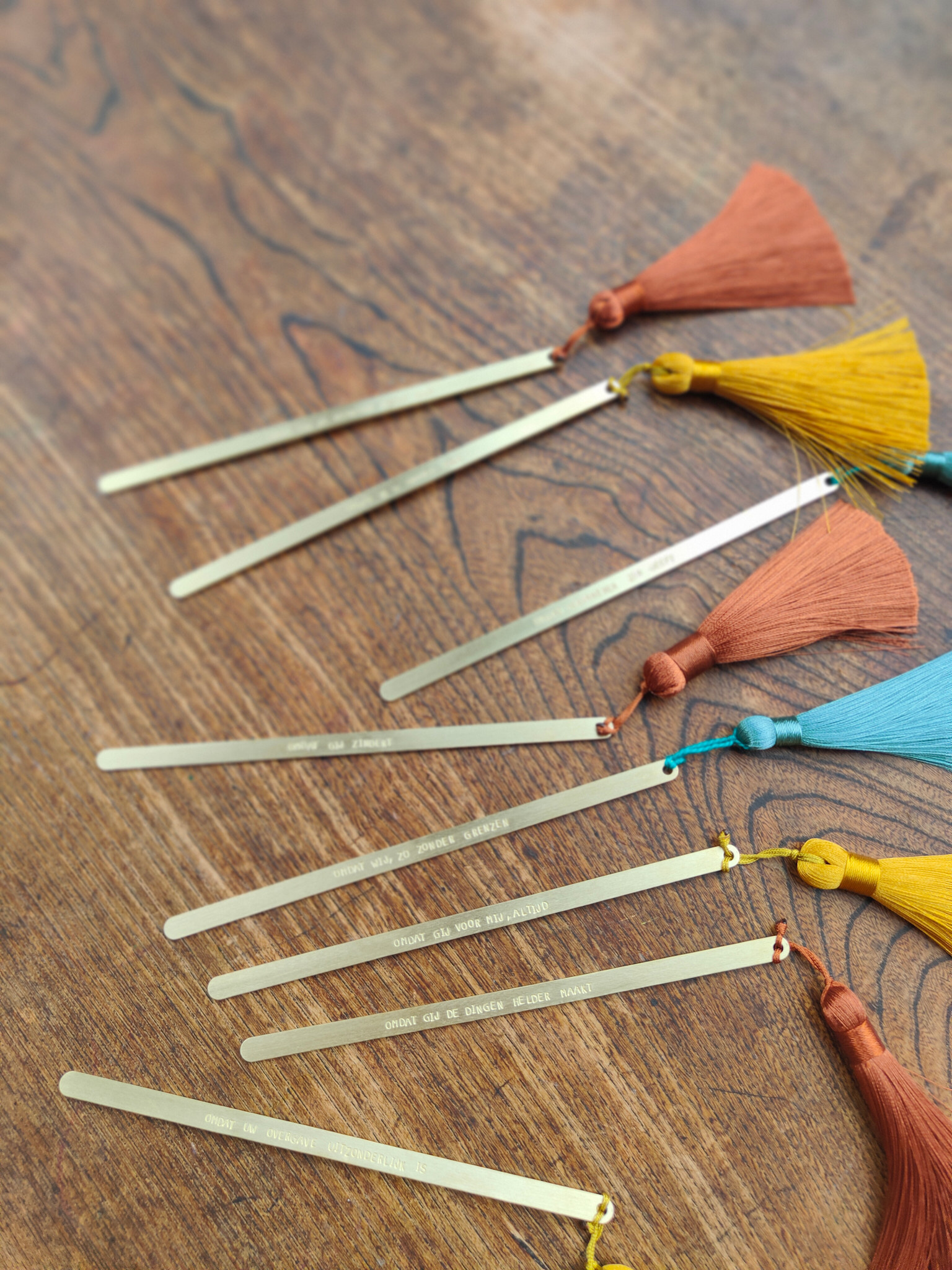 zij maakt er deze heerlijk sobere bladwijzers van.