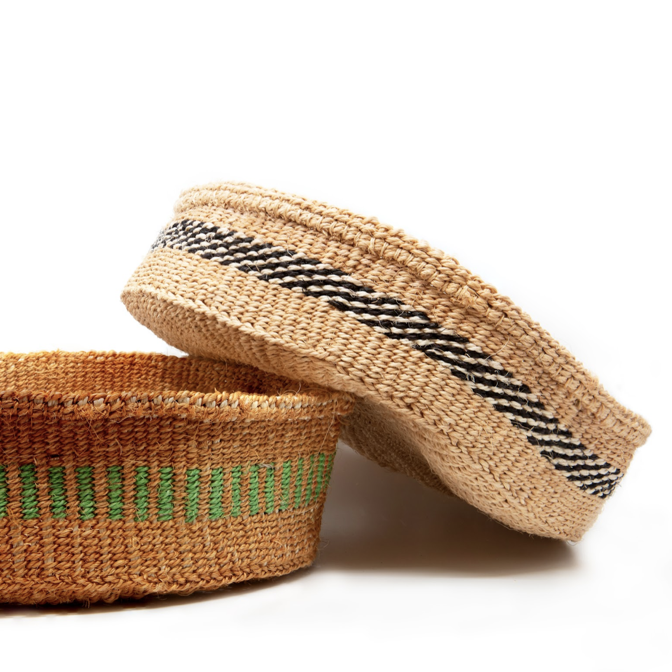 deze belgische vzw ondersteunt meer dan 300 vrouwengroepen te kenia, met elk gemiddeld 15 leden. al deze vrouwen weven deze traditionele manden met hun zelf geplukte, gevlochten en eigen geverfde sisal touw. zo voorzien zij in hun levensonderhoud en zijn zij minder afhankelijk van hun omgeving en de grillen der natuur.