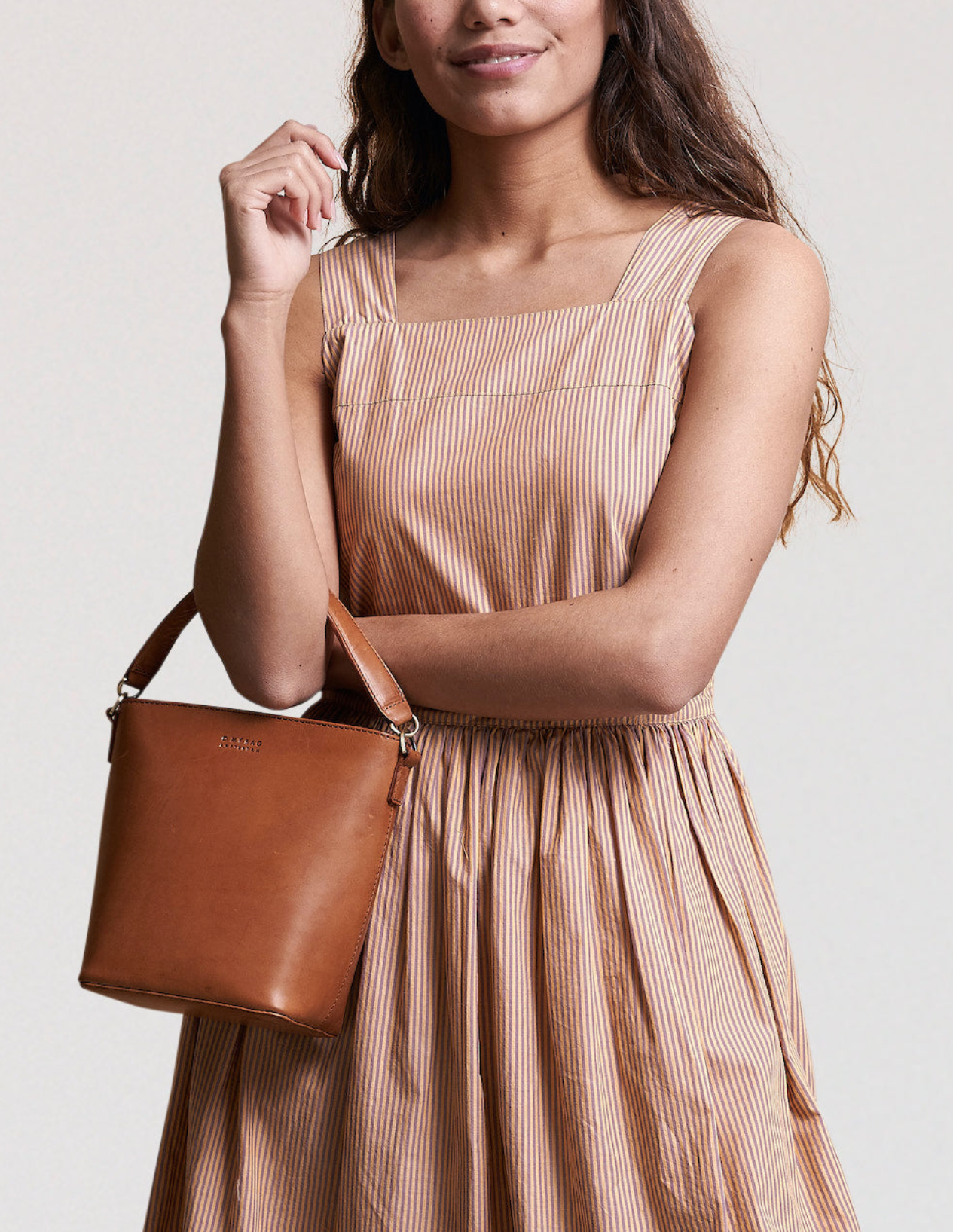 het leer is gelooid zonder schadelijke chemicaliën en afgewerkt met behoud van zijn natuurlijke karakter. door de open structuur kunnen er na verloop van tijd kleine oneffenheden en natuurlijke variaties ontstaan – elk detail draagt bij aan een rijke patina en maakt je tas écht uniek.