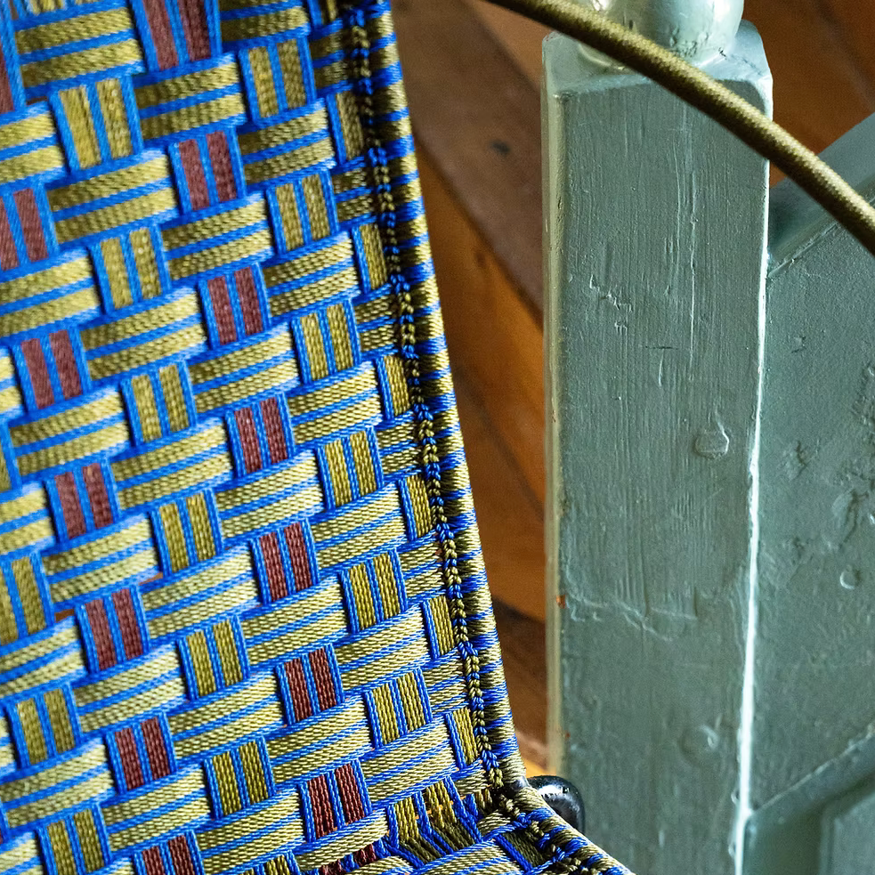 deze ontwerpster startte haar carrière bij louis vuitton en werkte erna bij verscheidene andere grote modehuizen. tijdens haar reizen door west-afrika ontdekte ze het rijke, lokale vakmanschap. dat was de start van deze meubelcollectie gemaakt uit visdraad, gekend voor zijn enorme weerstand.