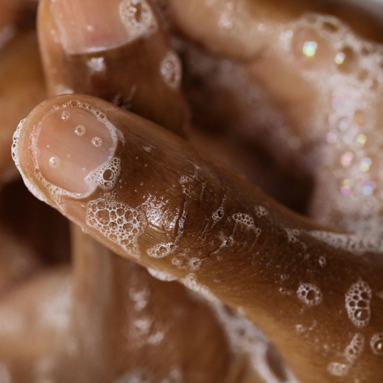 hand- en lichaamszeep, nu verkrijgbaar in een elegante glazen fles. na de eerste aankoop kunt u de zeep dankzij het binnenkort verkrijgbare navulsysteem thuis blijven gebruiken.