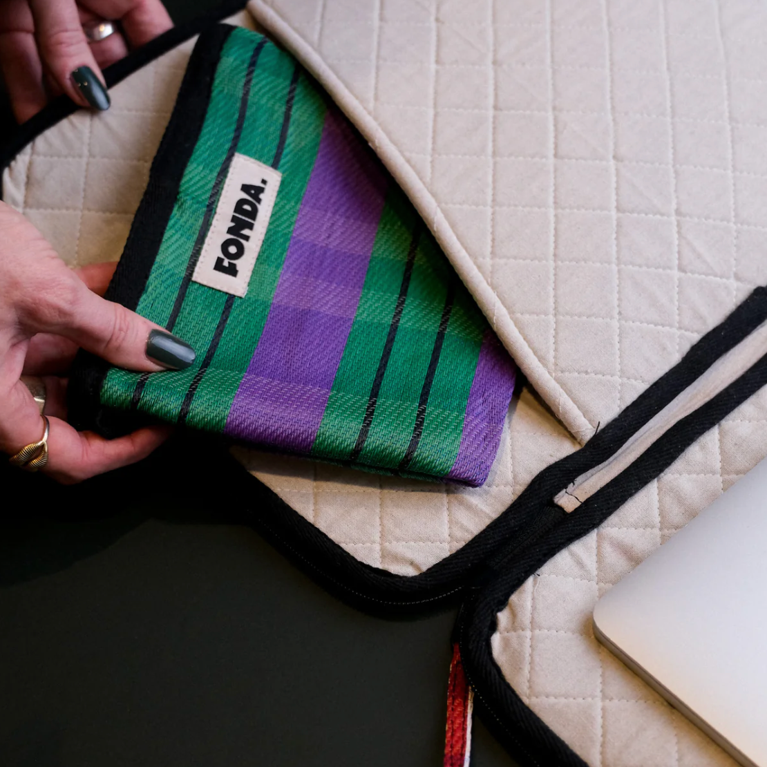 - binnenkant van zacht 100% gerecycled katoen om je spullen te beschermen.