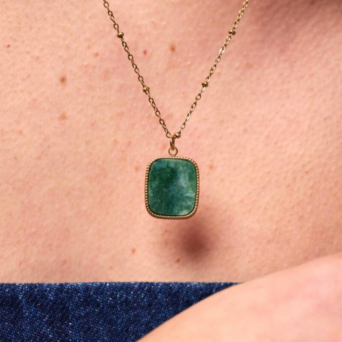 halsketting - big flat gemstone - green