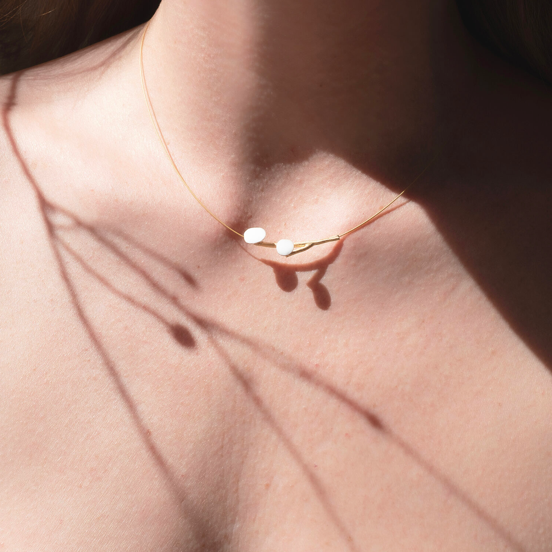 halsketting - double blossom - white