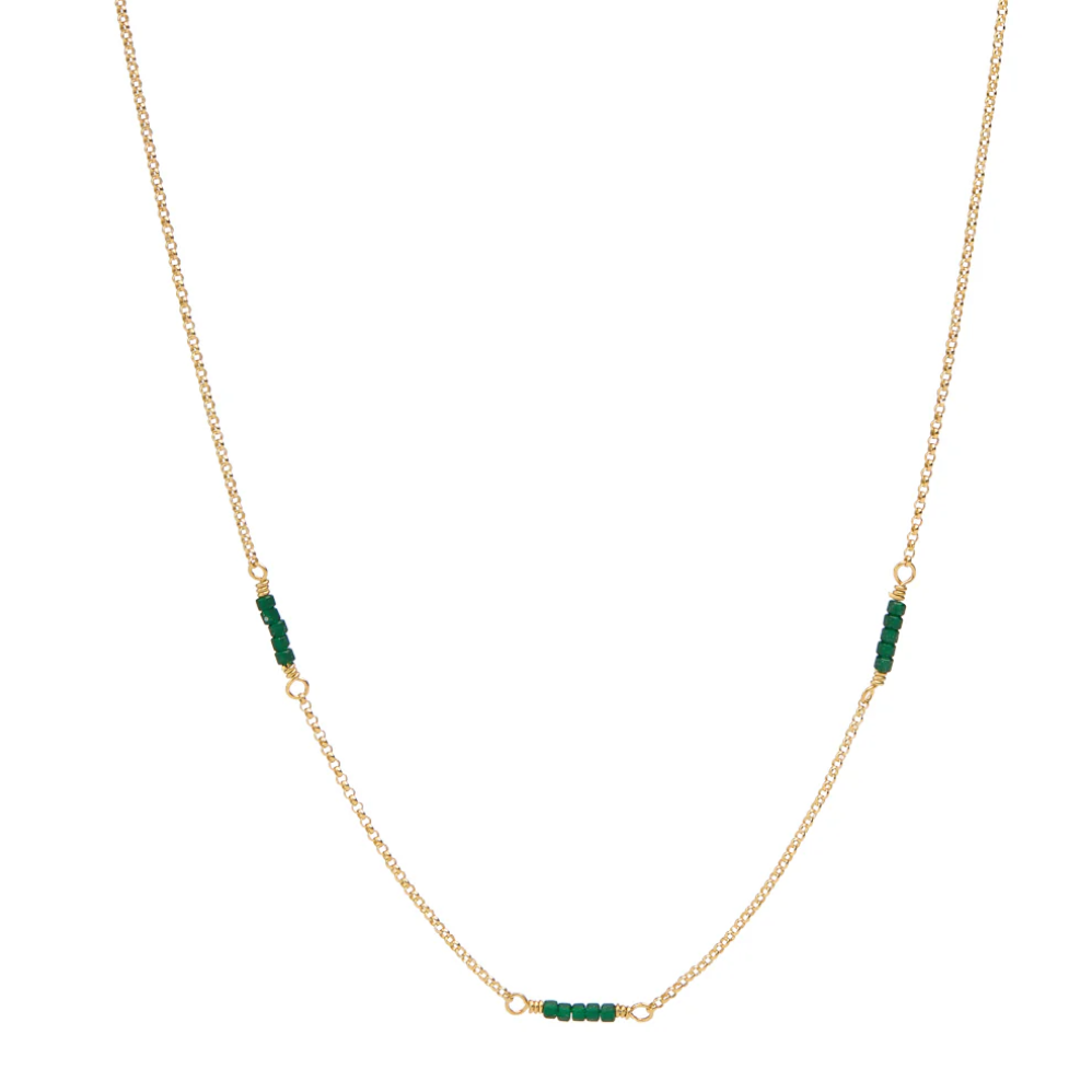 halsketting - fine green gem - verguld