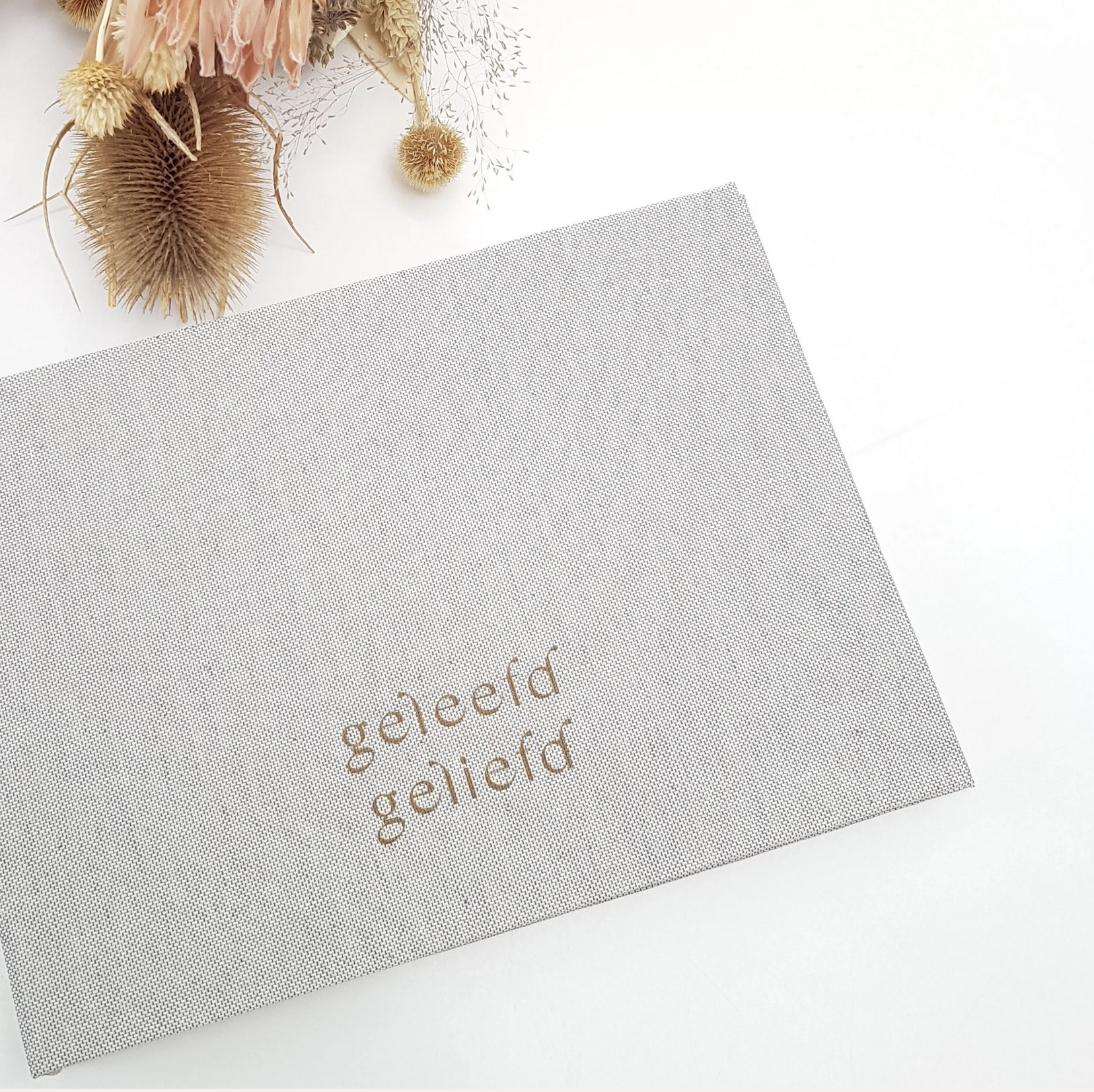 een stijlvol condoleanceboek in natuurlinnen om de liefdevolle herinneringen, grappige verhalen aan de dierbare overledene in te schrijven op het zachte katoenpapier.