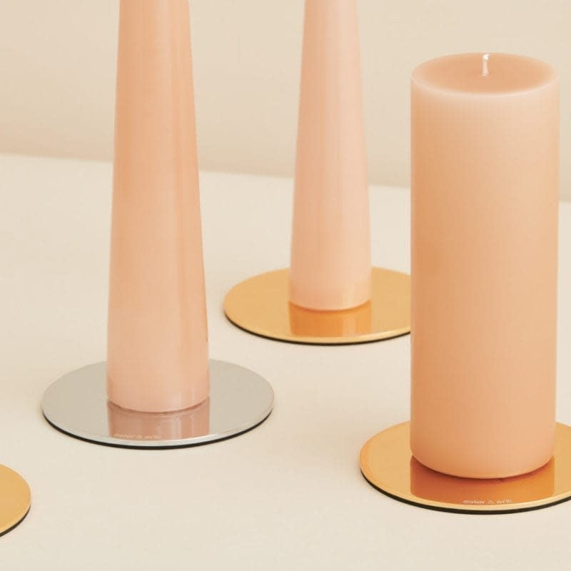perfect voor bij kegel- en stompkaarsen. de kaars wordt op zijn plaats gehouden door drie spikes, zodat deze stevig vast komt te zitten. daarnaast heeft de plaat een schuimrug om het onderliggende oppervlak te beschermen.