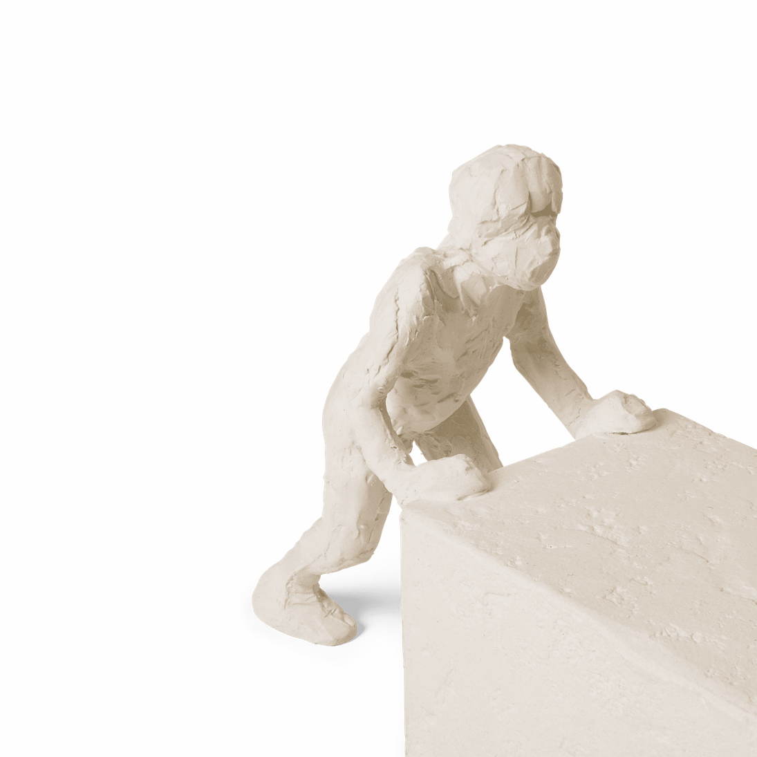 het ontwerp is ongeglazuurd, authentiek en ongesneden. verder zitten, liggen, liggen, leunen of hurken de figuren allemaal op een grafische sokkel. de figuren kunnen vrij in de ruimte staan als decoratie, maar dienen ook als boekensteunen of papiergewichten.