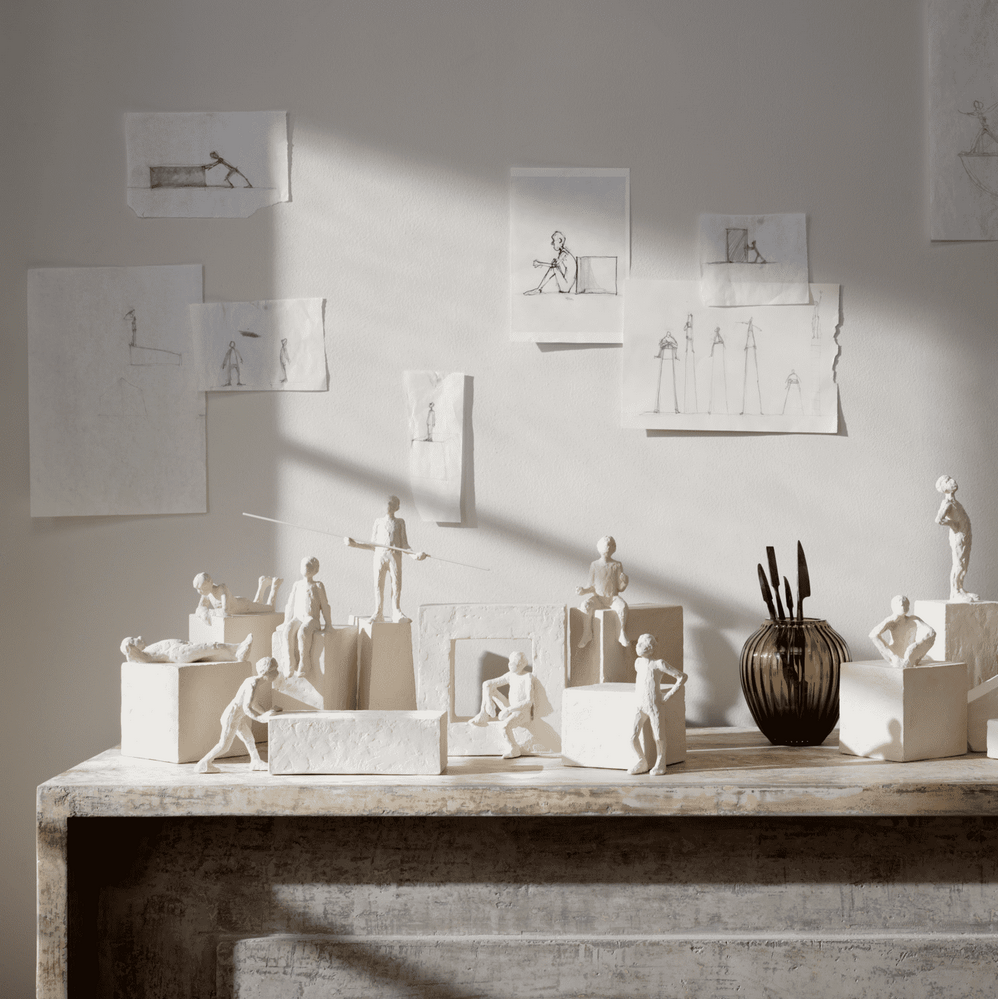 sober en tijdloos. deze personages zijn decoratieve objecten voor het woongedeelte.