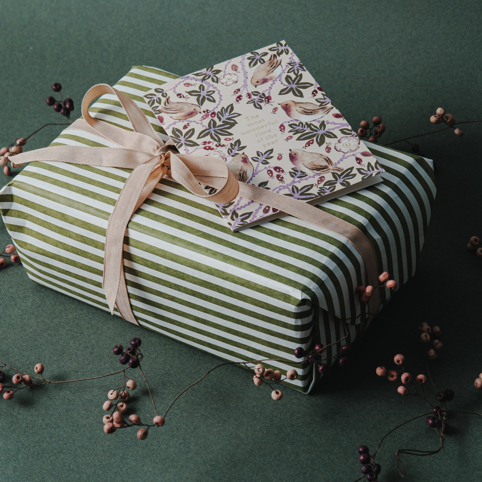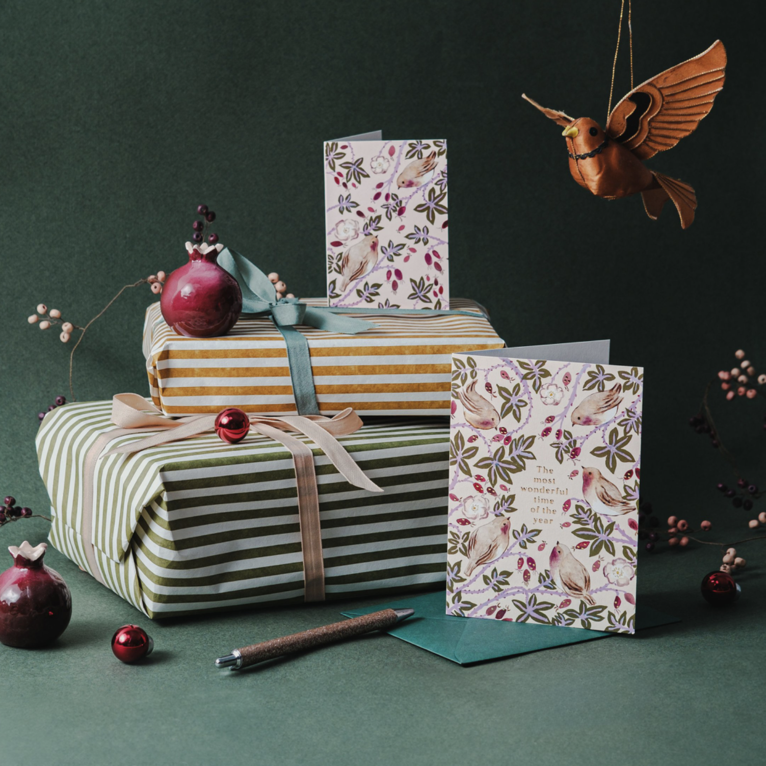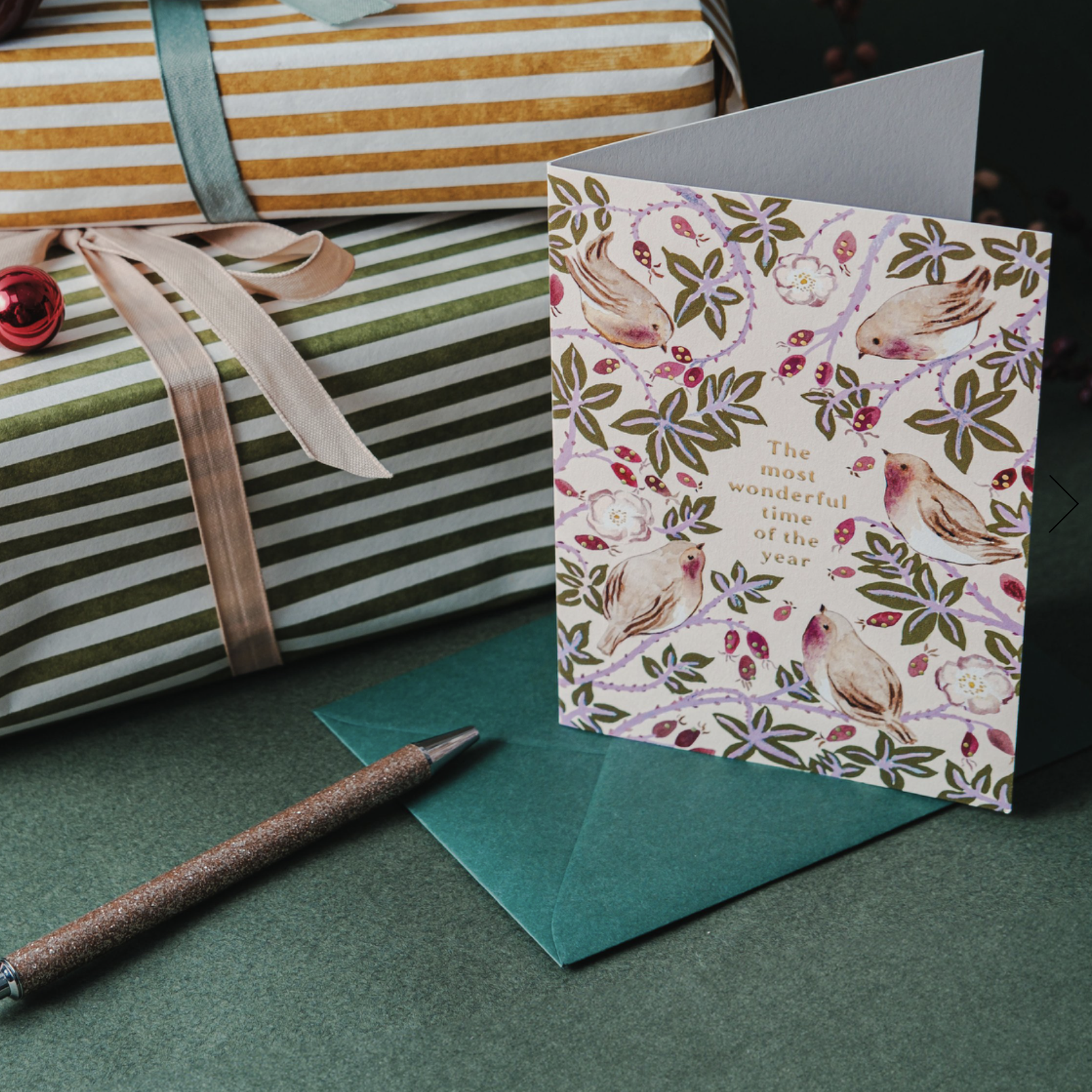 gedrukt op fsc-gecerftificeerd papier, met bijpassende donkergroene enveloppe.