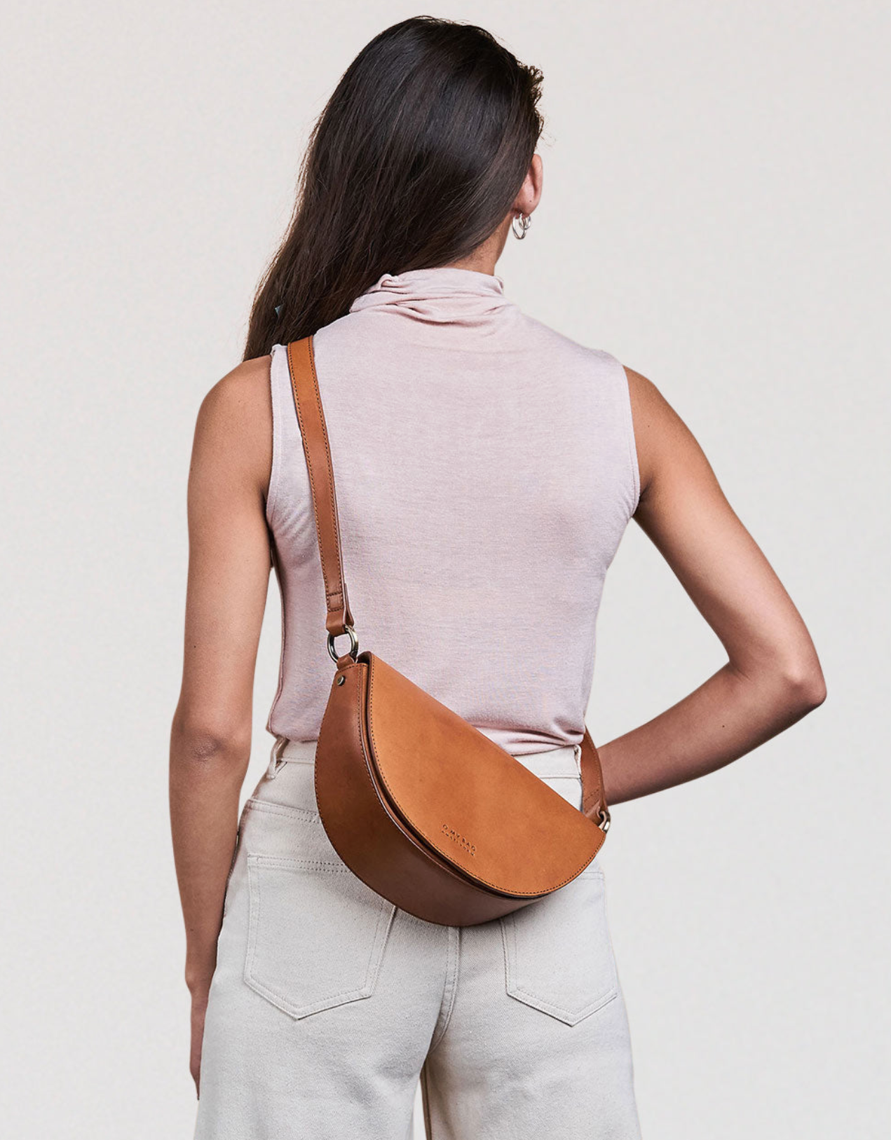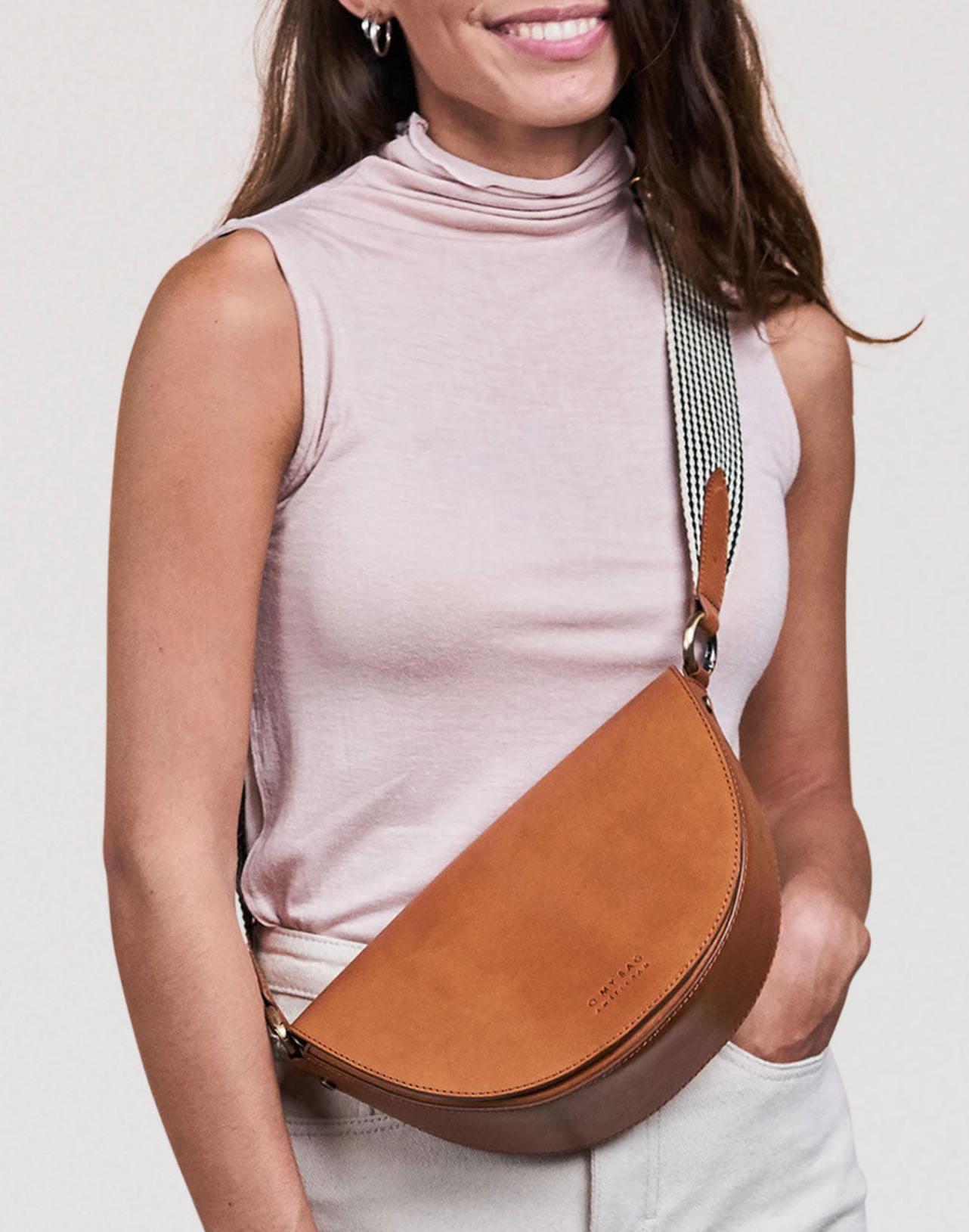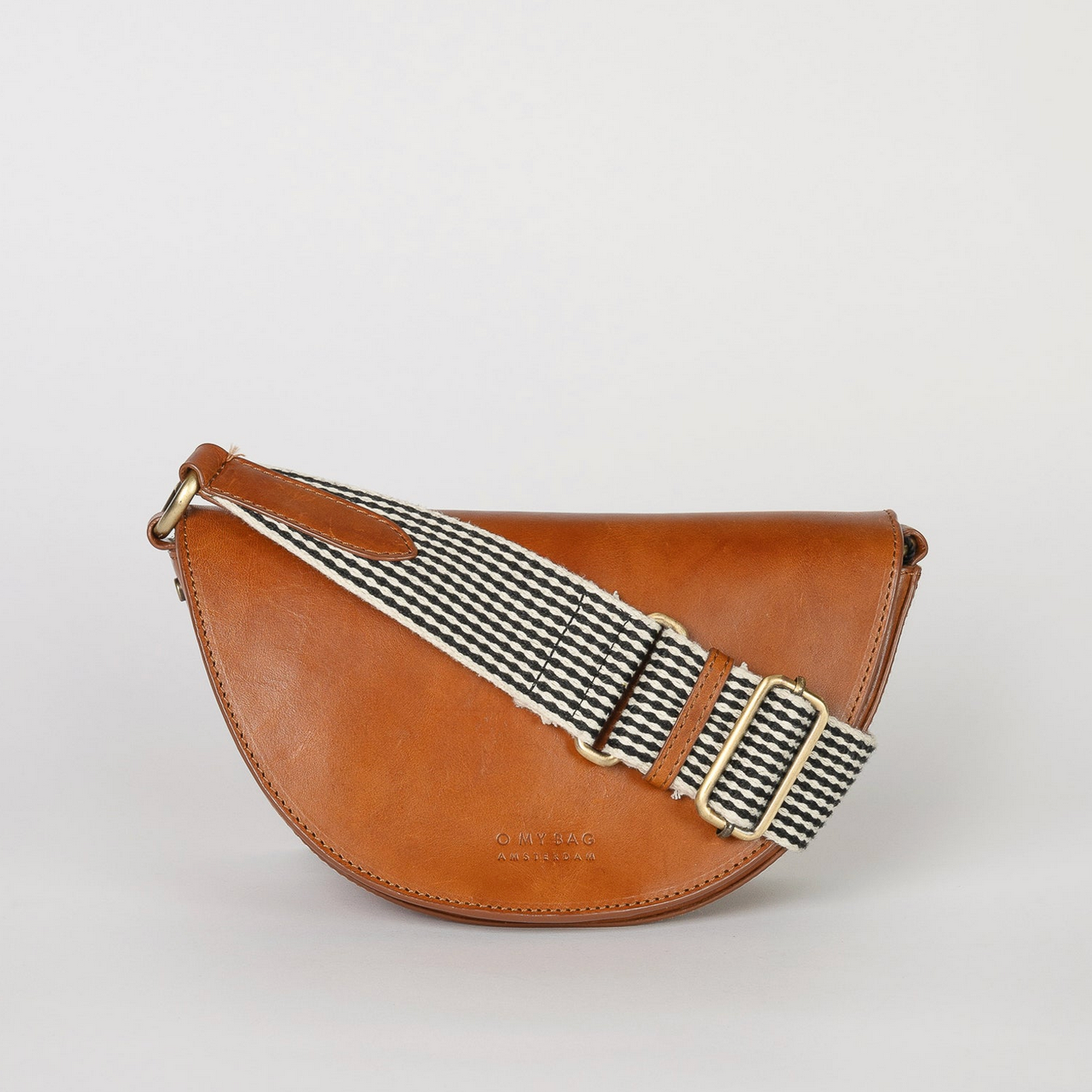 deze halfronde tas wordt geleverd met twee verstelbare straps, een volledig leren band en een gots-gecertificeerde geruite band. ontzettend veelzijdig, past bij elke look & gelegenheid.