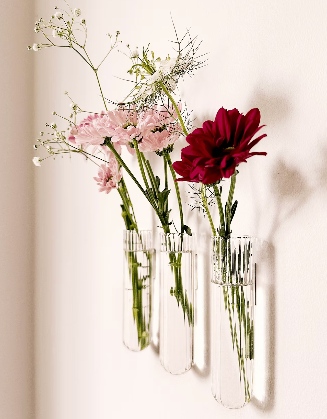 opgelet: de vaasjes worden geleverd met een losse magneet met zelfhechtende tape die aan de muur moet worden bevestigd. laat deze magneet voordat je deze aan de muur hebt bevestigd nooit ongecontroleerd tegen de magneet van het vaasje botsen. de magneet kan dan versplinteren.