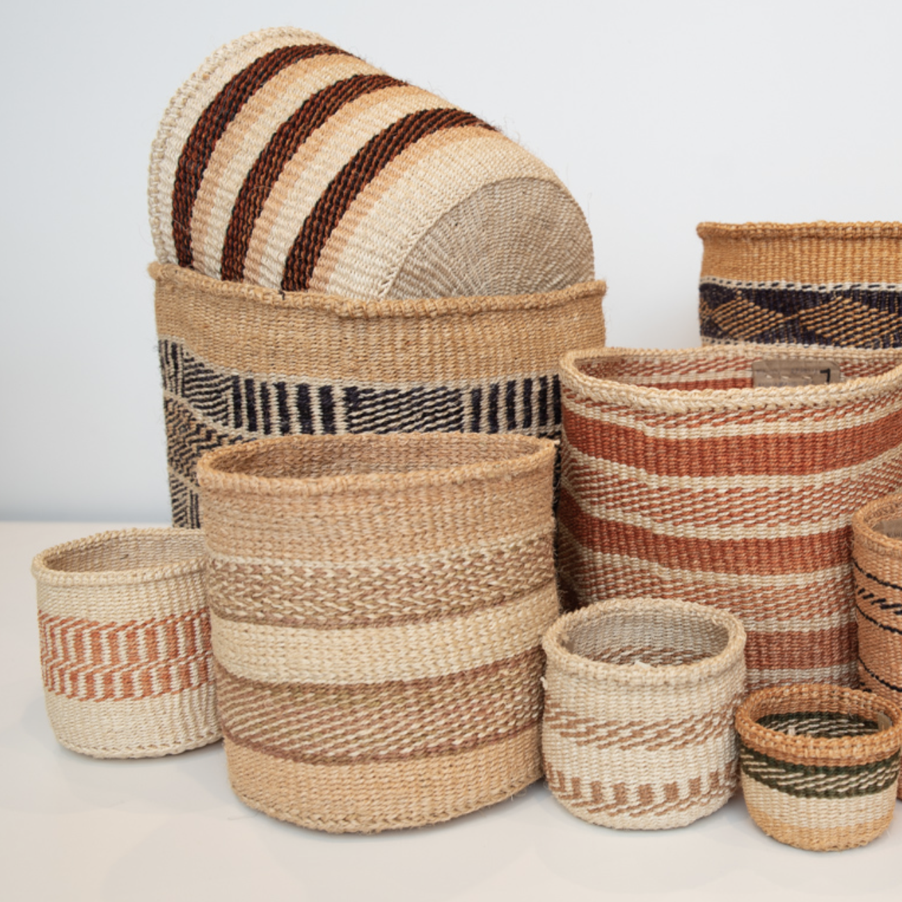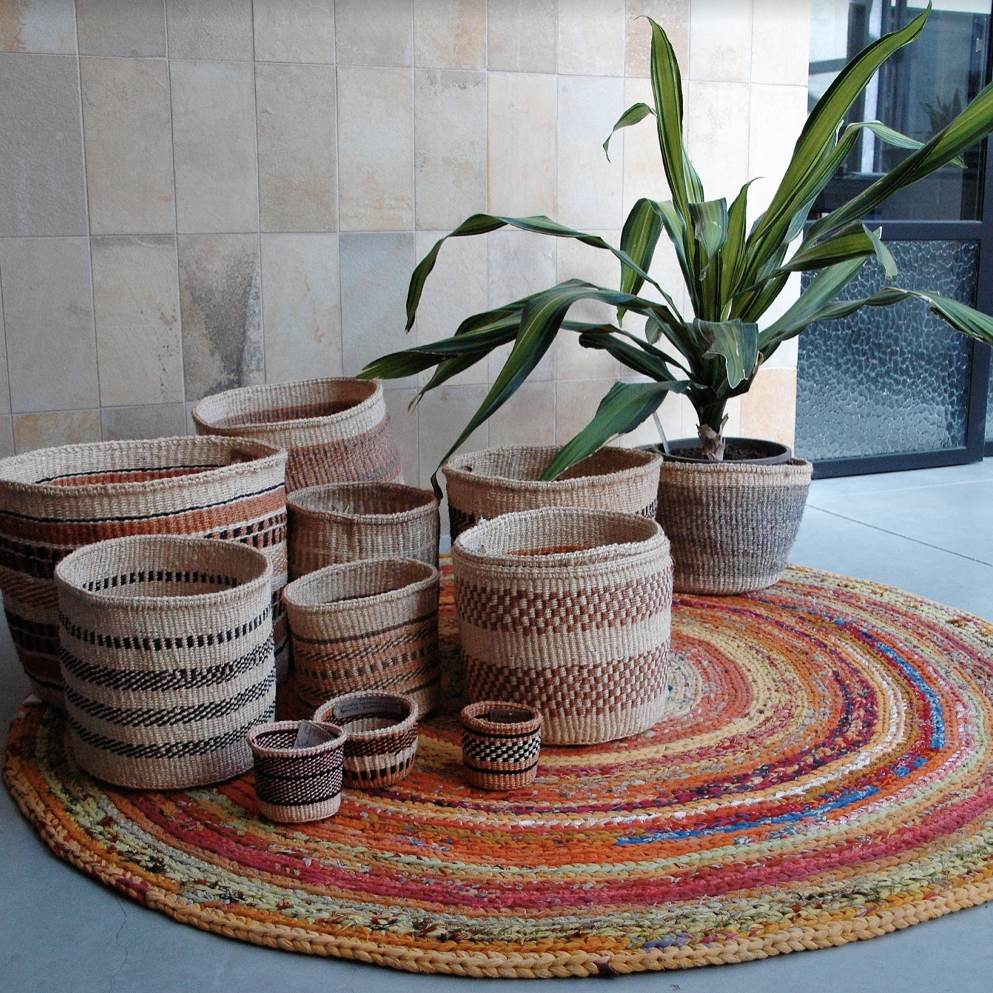 deze belgische vzw ondersteunt meer dan 300 vrouwengroepen te kenia, met elk gemiddeld 15 leden. al deze vrouwen weven deze traditionele manden met hun zelf geplukte, gevlochten en eigen geverfde sisal touw. zo voorzien zij in hun levensonderhoud en zijn zij minder afhankelijk van hun omgeving en de grillen der natuur.