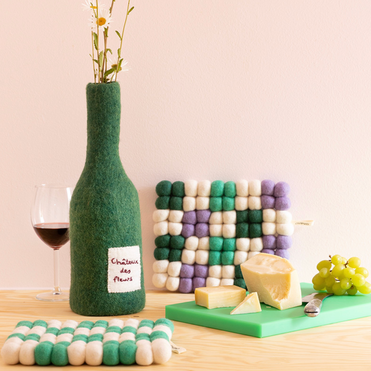 perfect om de potten op te zetten, omdat wol als materiaal zowel vuil- als hitteafstotend is.