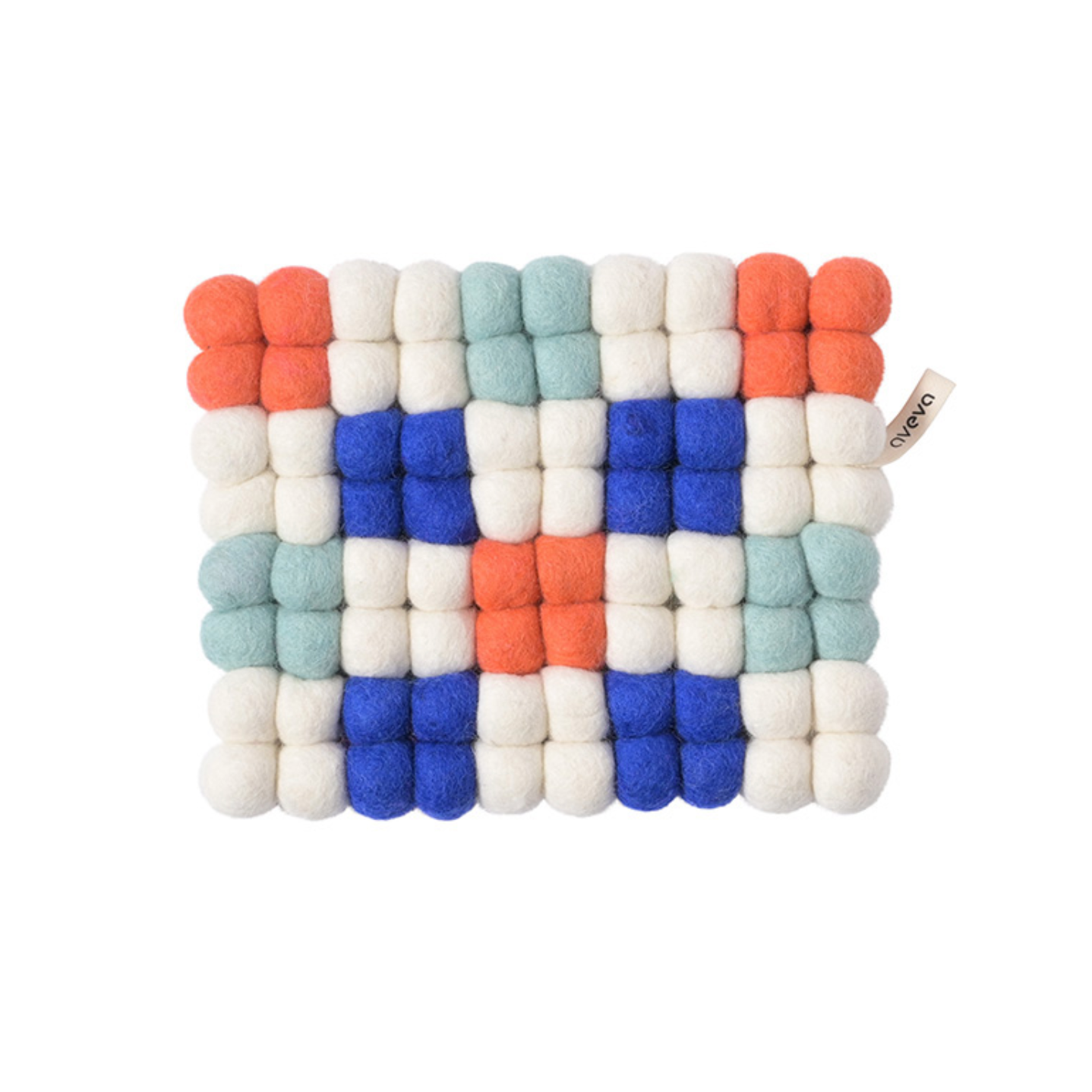 kleurrijke rechthoekige, handgemaakte onderzetter voor hete potten en pannen.