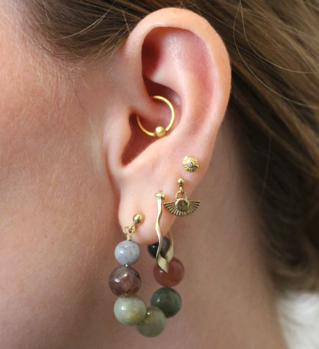 speelse oorbel met natuurlijke gemstones.