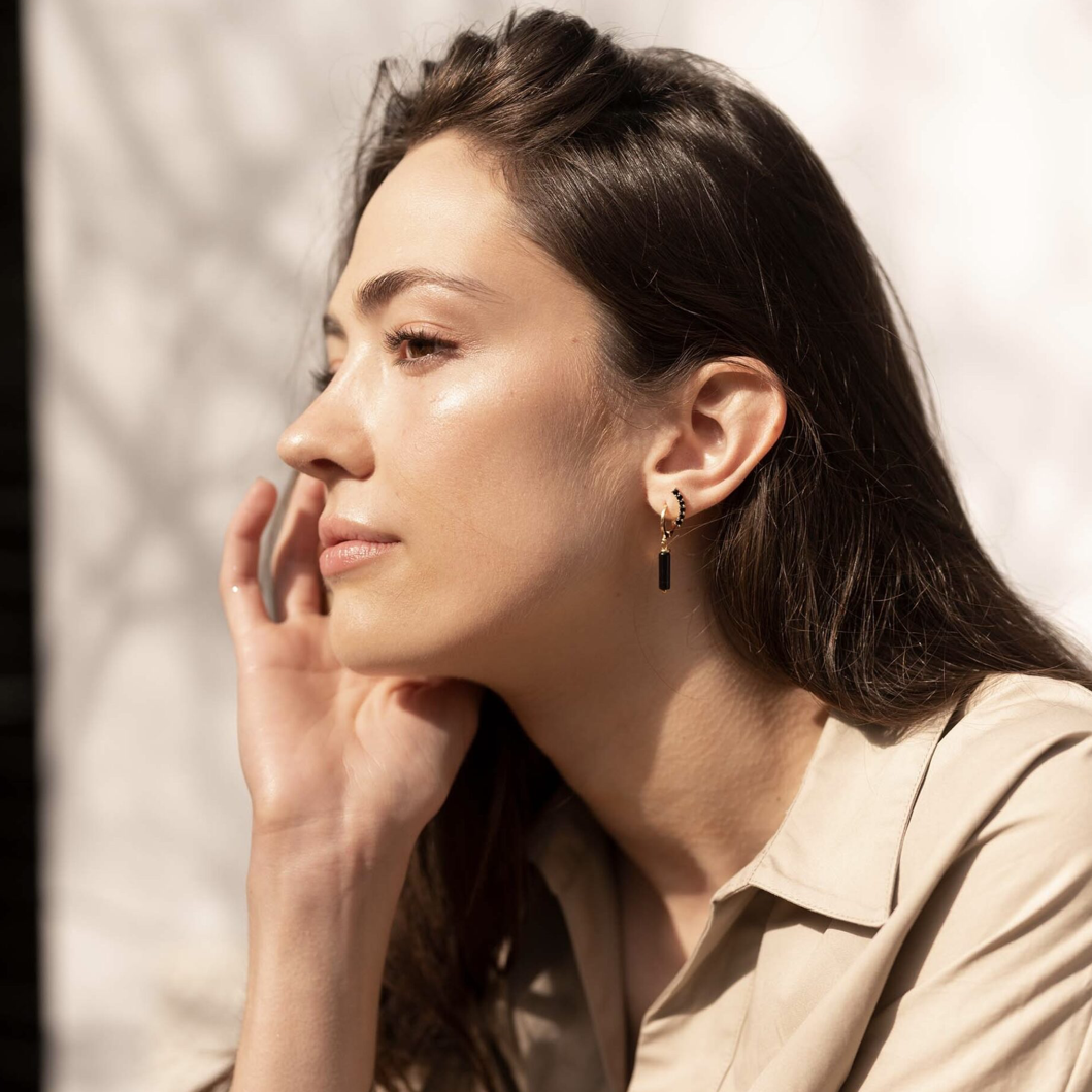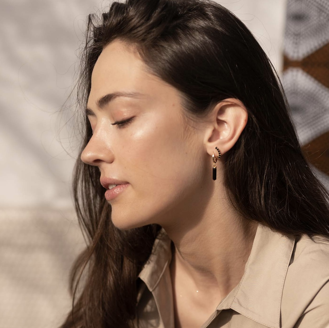 oorstekertjes met 6 zwarte steentjes. lengte 1.4cm.