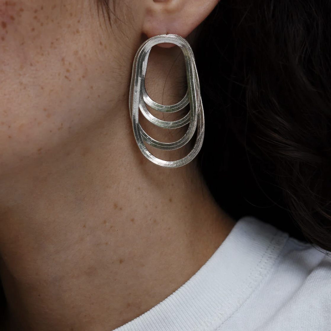de geste-lijn illustreert de beweging van de hand die vormgeeft, geheel in zachte rondingen, en schetst het handmatige gebaar. een spel van contrasten tussen flexibiliteit en structuur, een ode aan de beweging. sterke stukken die het licht opvangen en het lichaam accentueren.