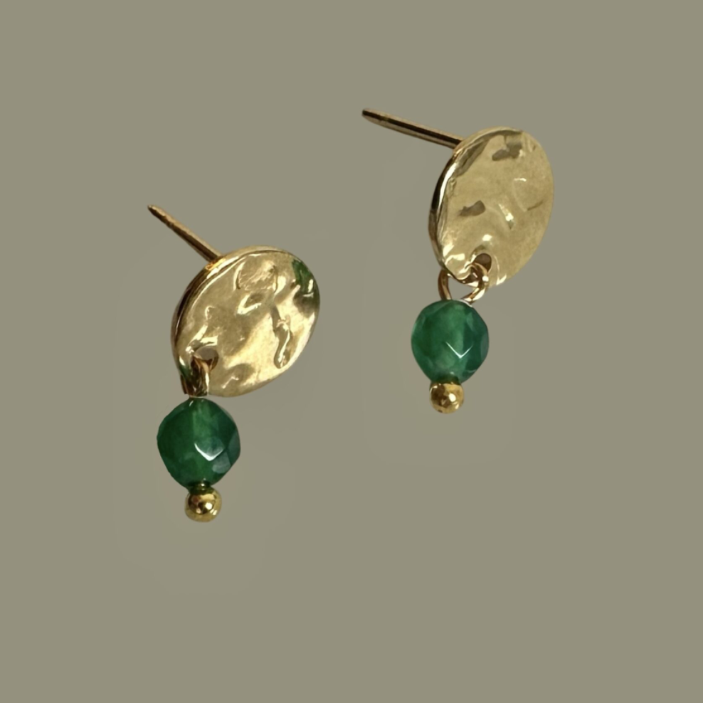 fijne gehamerde oorstekertjes met een gemstone. lengte 1.2 cm