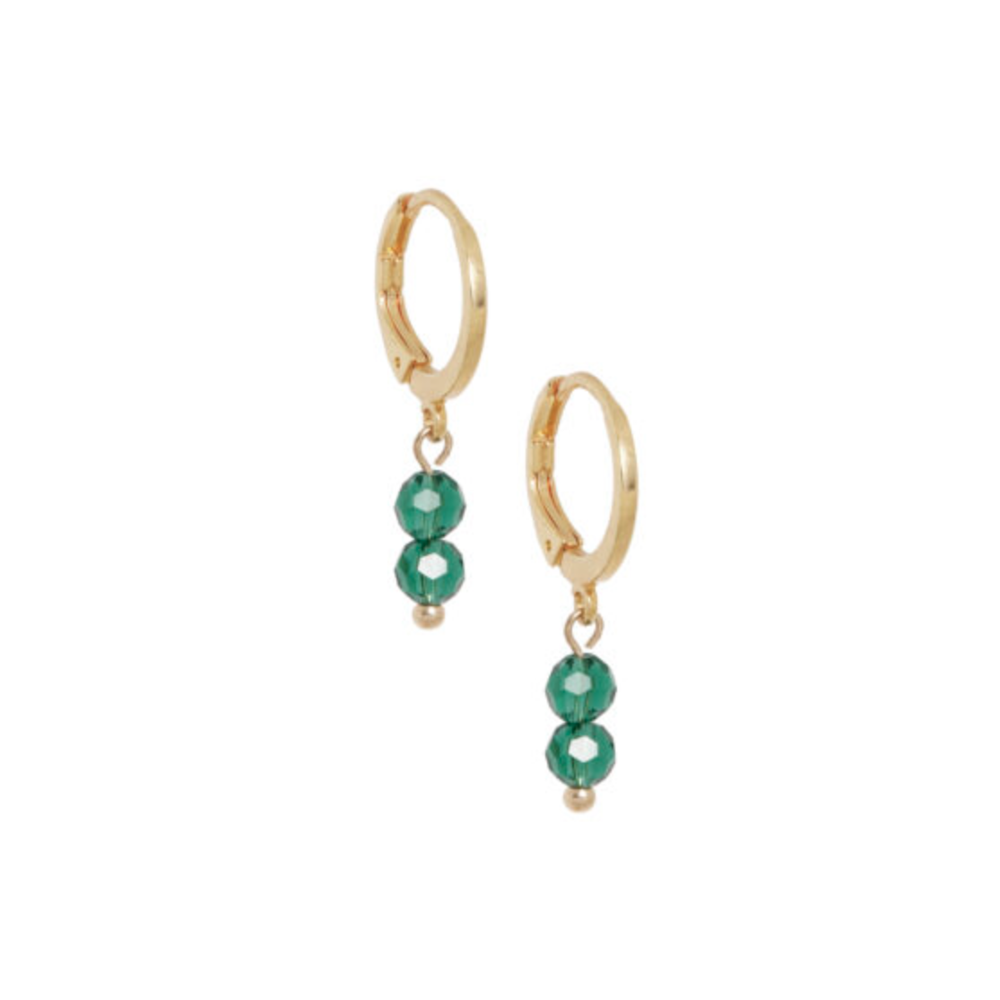 korte vergulde oorringetjes met 2 gemstones in felgroene tinten. lengte 1.5cm.