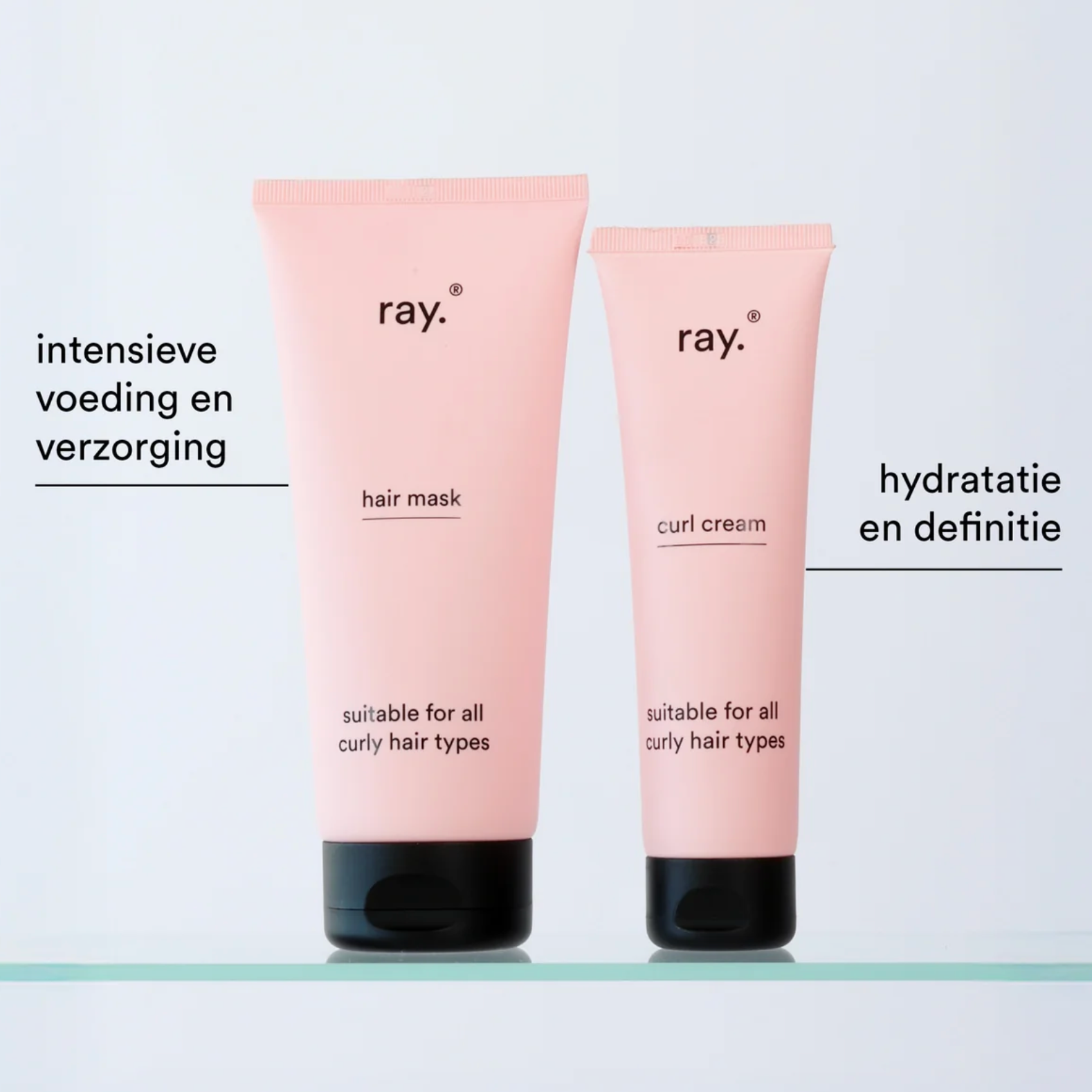 tip: breng het ray haarmasker aan na het wassen voor intensieve voeding van je krullen, zonder ze te verzwaren. breng nadien de krullencrème aan.
