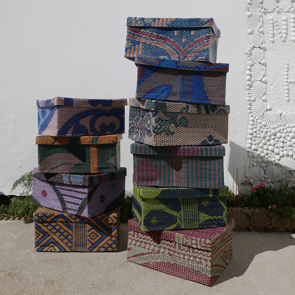 praktisch en duurzaam. een mix van hedendaags design en traditionele technieken. ideaal om kleine spullen, speelgoed, sjaals enz. in op te bergen.