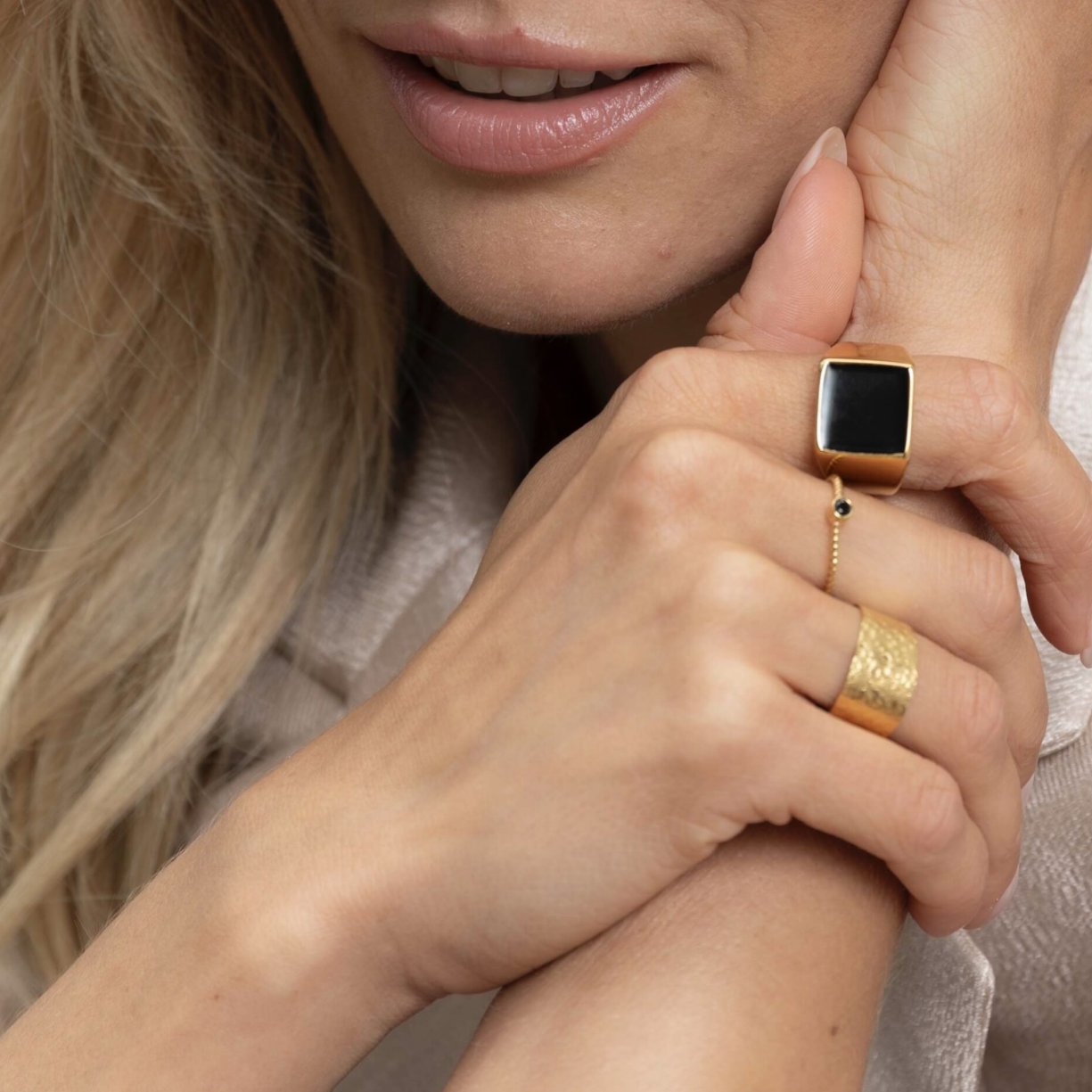 in maat verstelbaar, past altijd. breedte de ring 1cm.