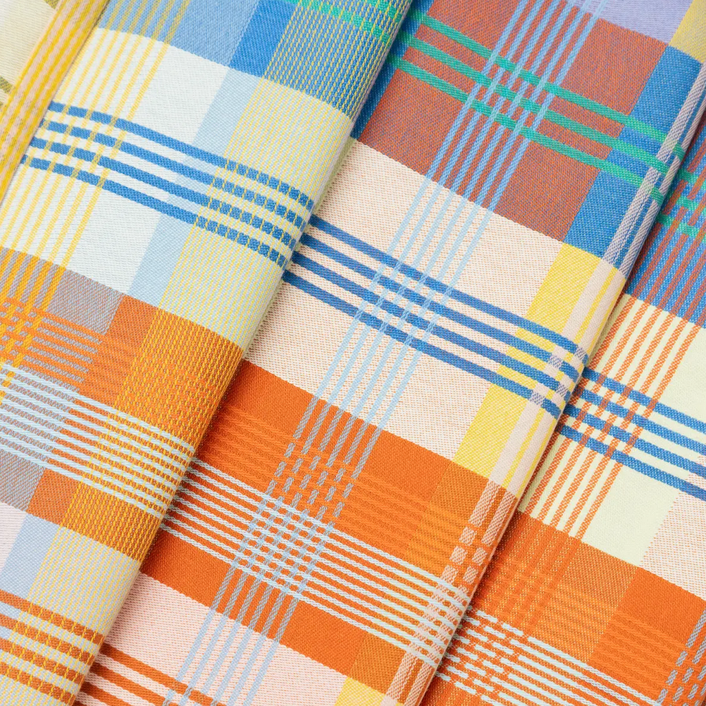 wanneer fabrieken garens verven om textiel te weven, maken ze er -voor het geval dat- altijd wat extra bij maar deze blijven vaak ongebruikt. een nederlandse ondernemende dame ging hiermee aan de slag en ontwierp dit textiel uit deze restanten. zo ontstaan eindeloos schone & onverwachte kleurencombinaties.