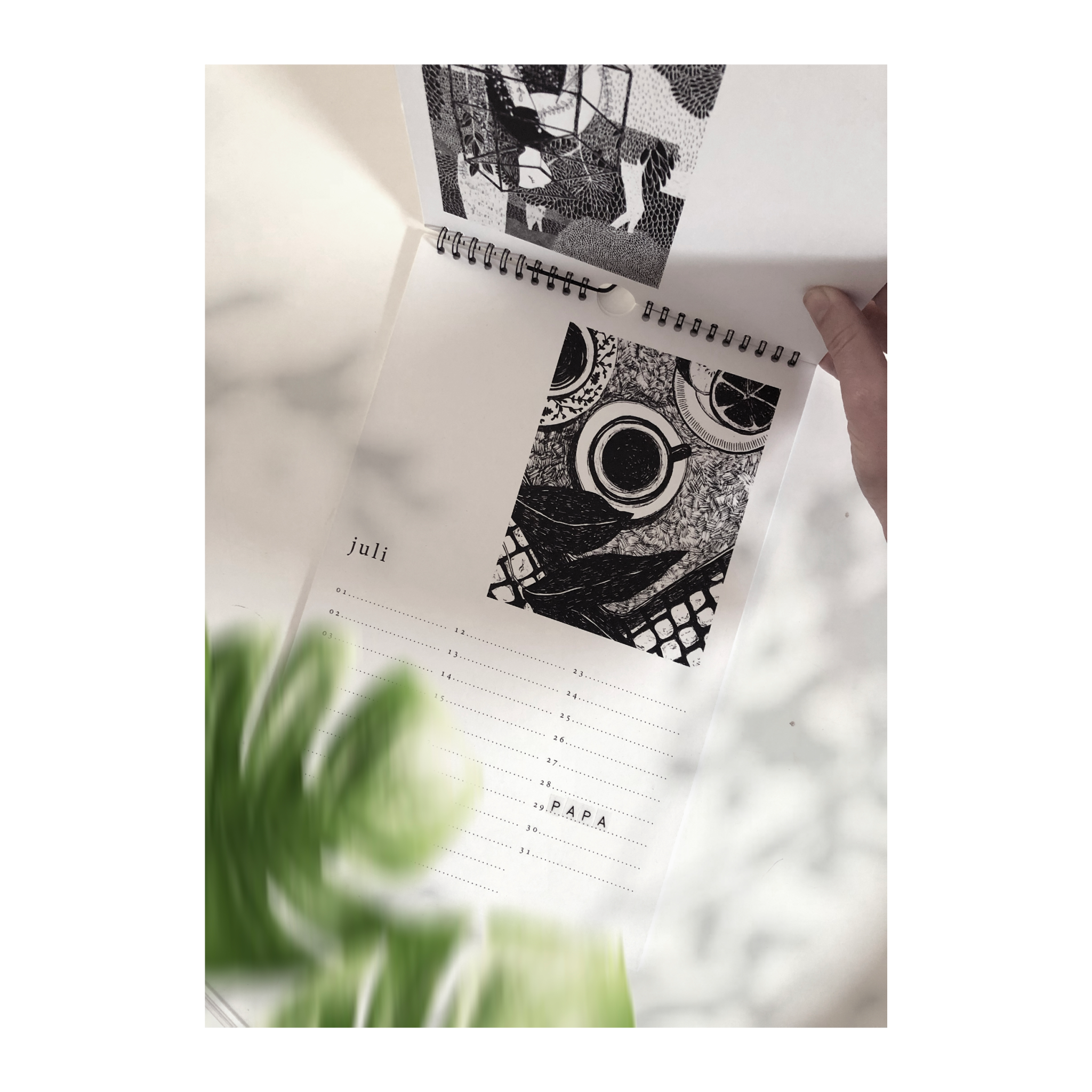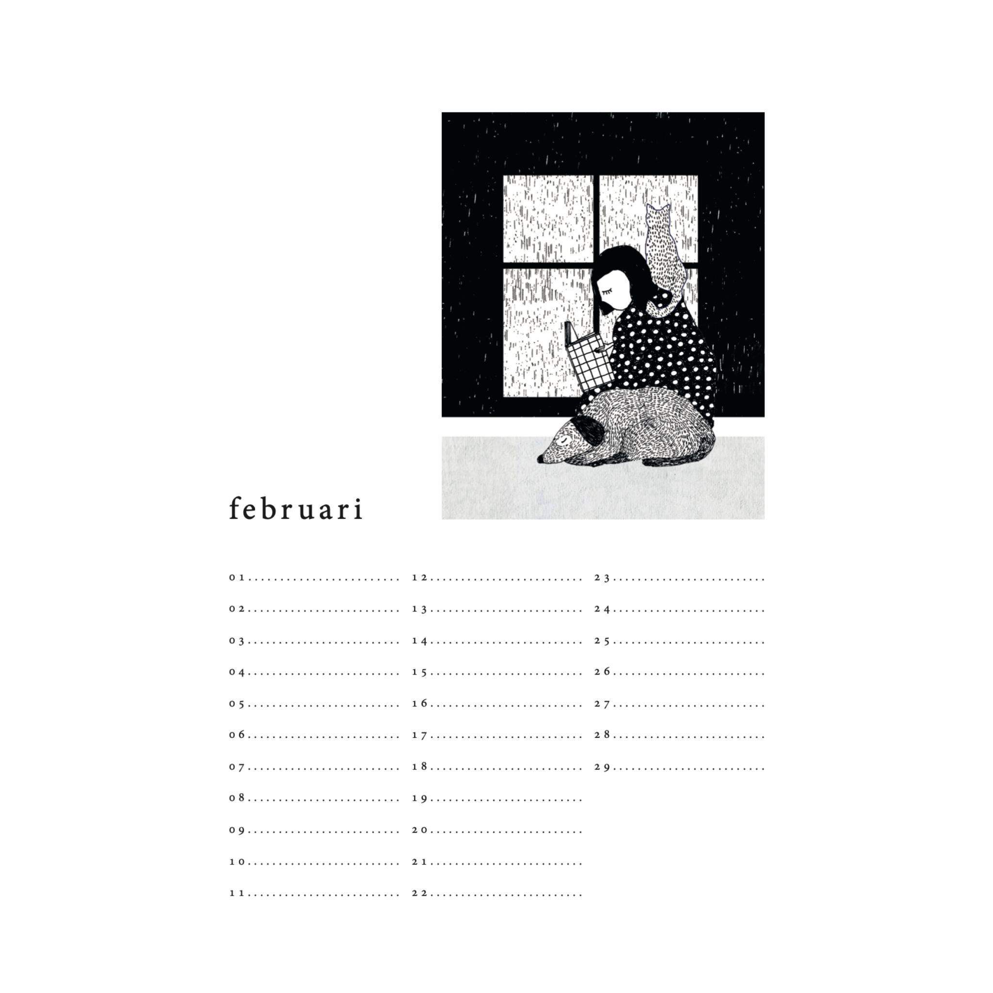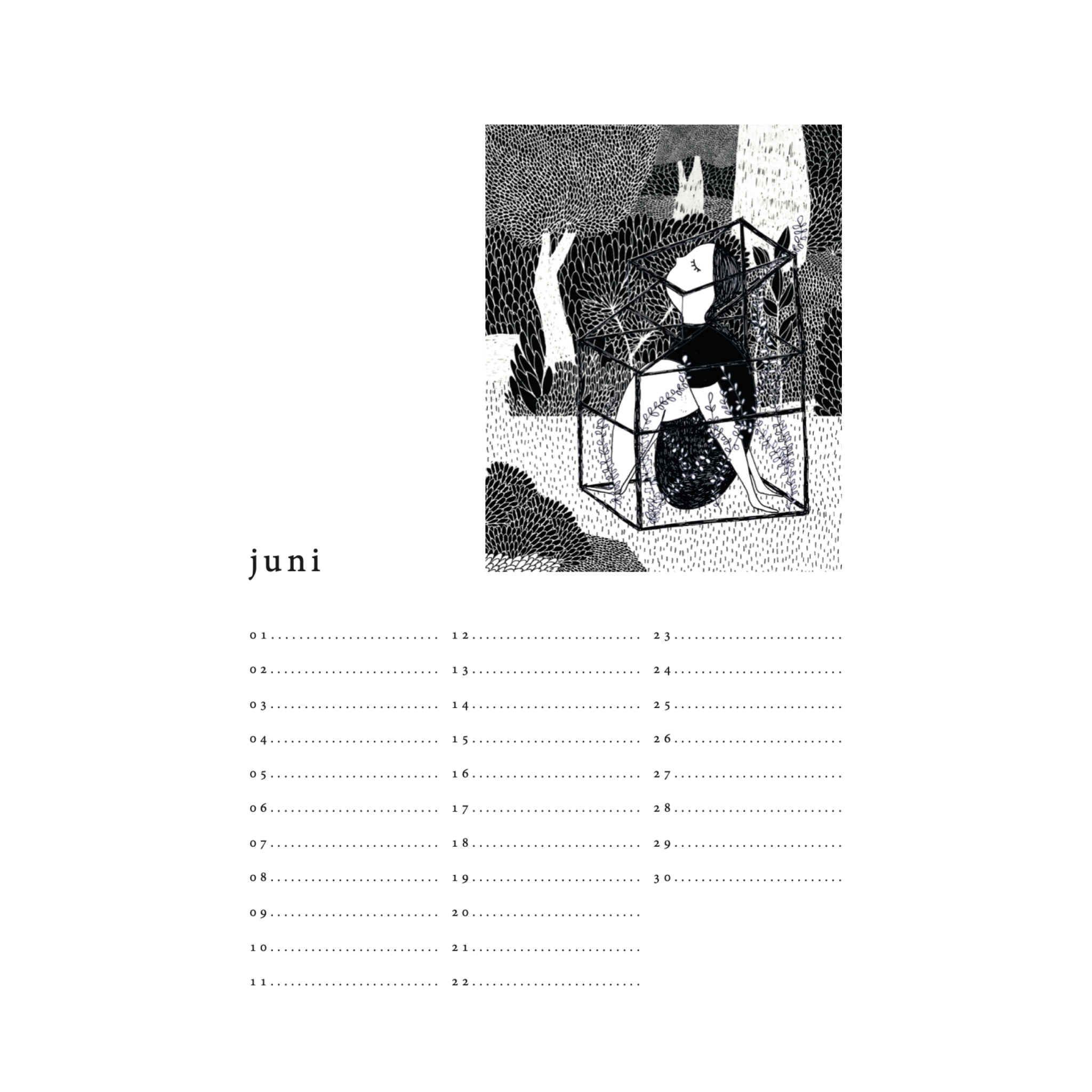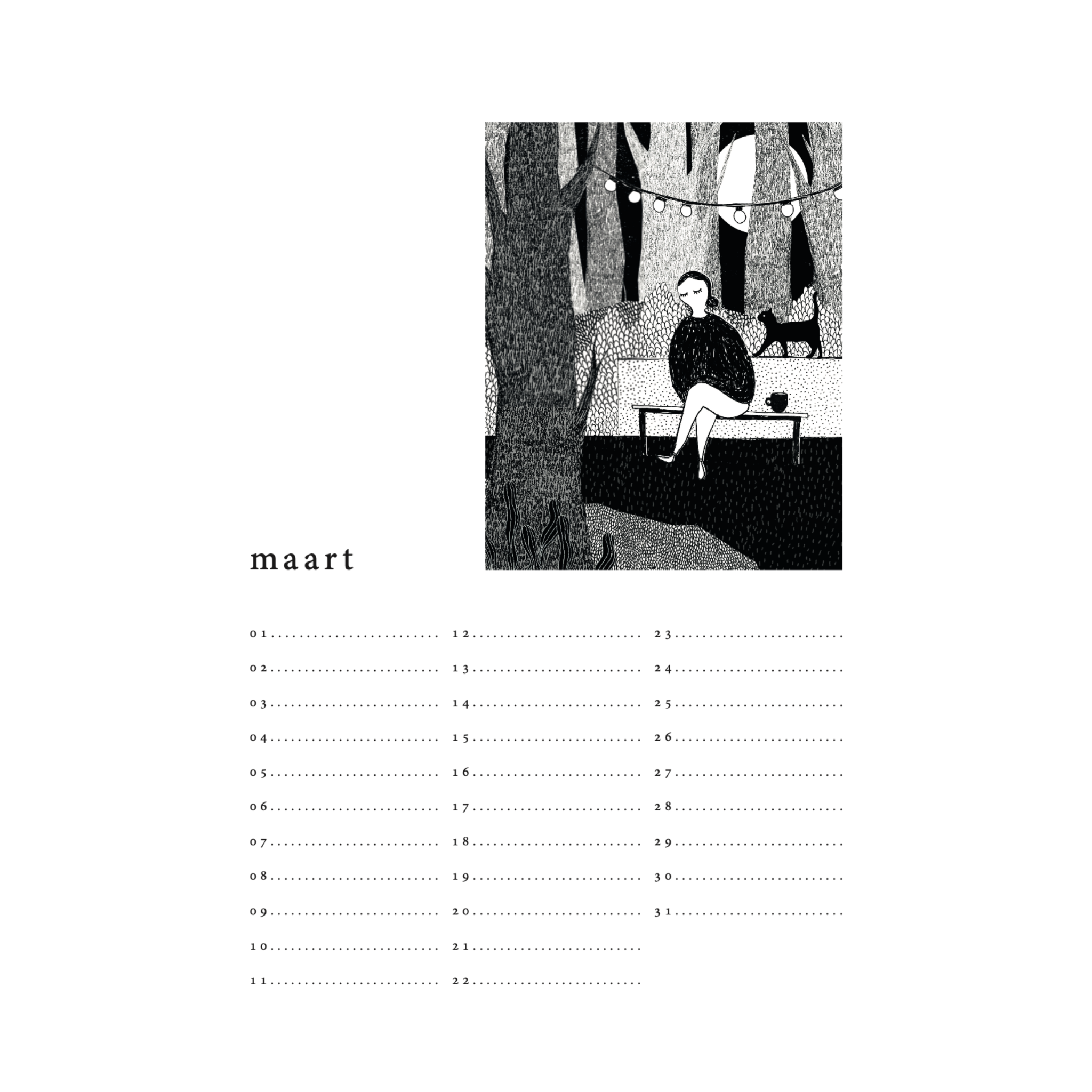 elke maand een nieuwe sobere, zwart)wit illustratie om van te genieten.