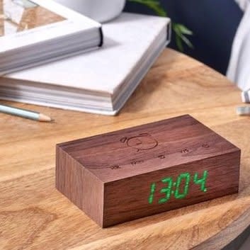 lasergegraveerde touch control top. flip technologie: wanneer je de wekker omdraait zet je hem aan of uit. geluidsactief klok-systeem: de verlichte klokdisplay verdwijnt bij stilte en licht weer op bij geluid of aanraking. draadloos (op te laden met bijgeleverd kabeltje).
