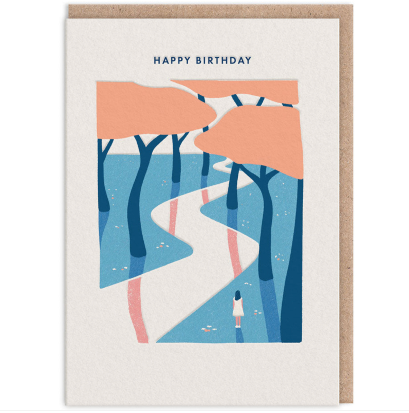 wenskaart - happy birthday / girl blossom trees