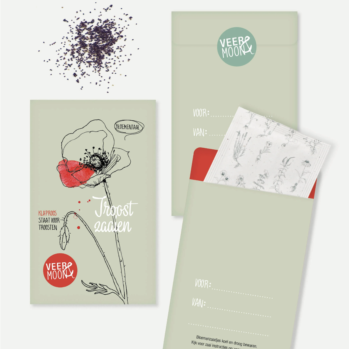 de klaproos staat voor ‘troost’ en zal al troostend werken bij het ontvangen van de zaden, maar vooral bij het zien van de mooie rode bloemen, wanneer ze opkomen.